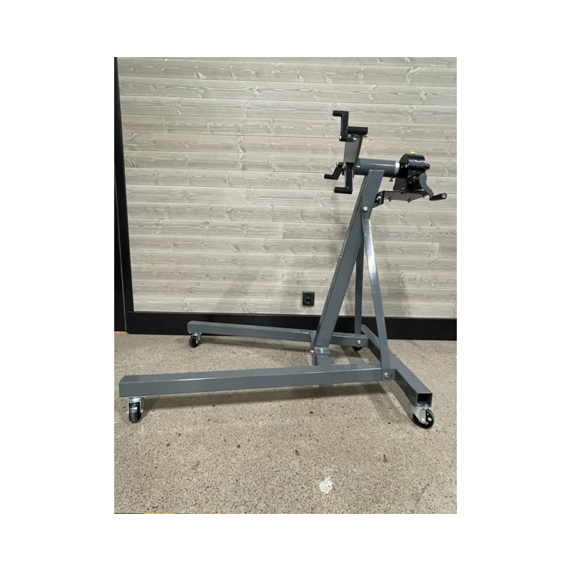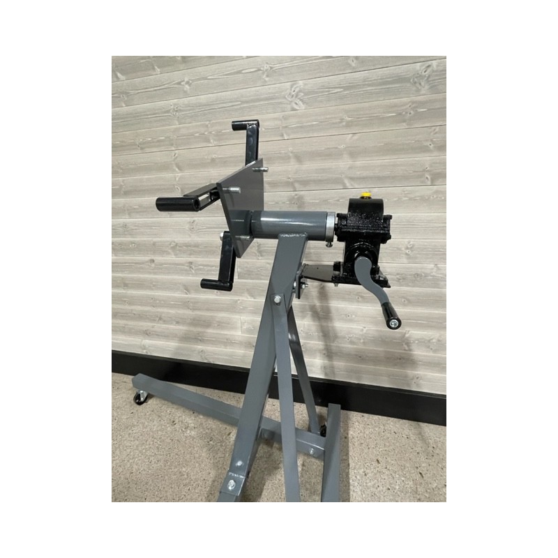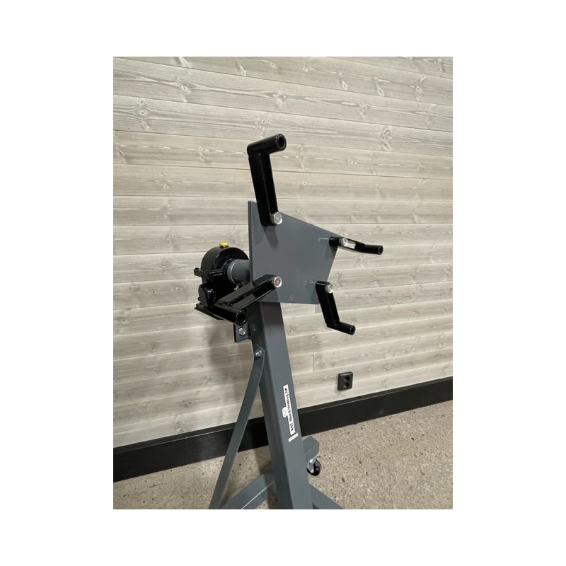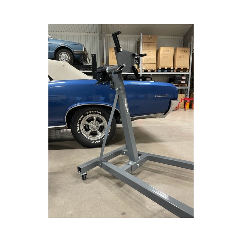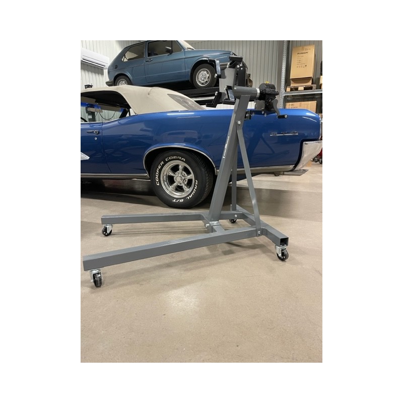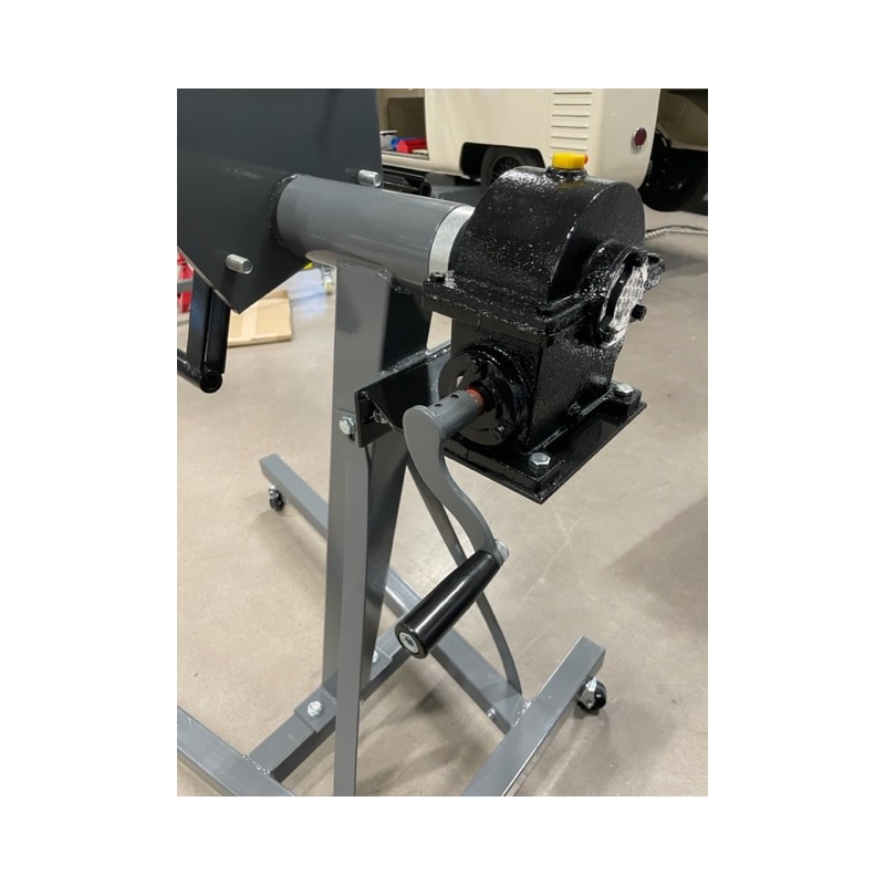 Motorstativ med snäckväxel och vev som gör det enkelt att rotera motorn