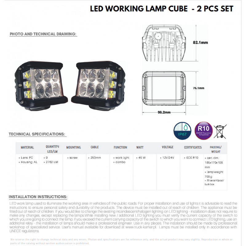 Arbetsbelysning med sidoljus 45w