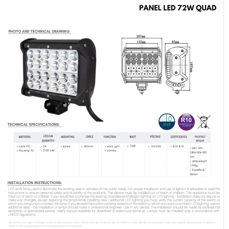 Arbetsbelysning 72w 3767LM...