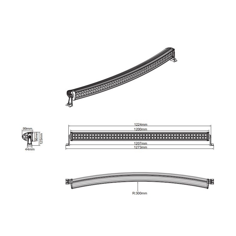 Dubbel rad curved led bar 288w 93x3w...