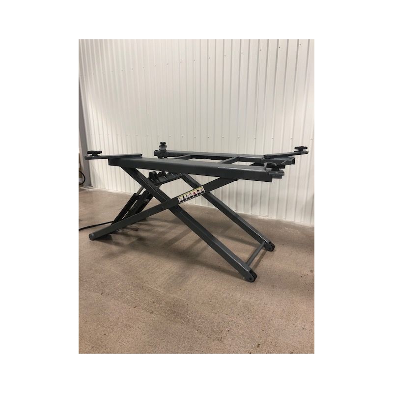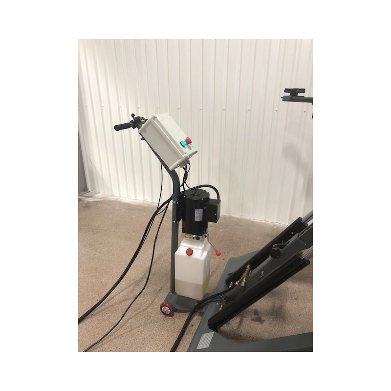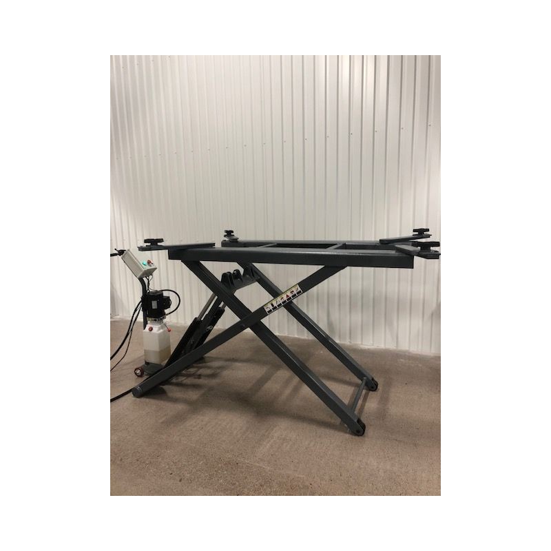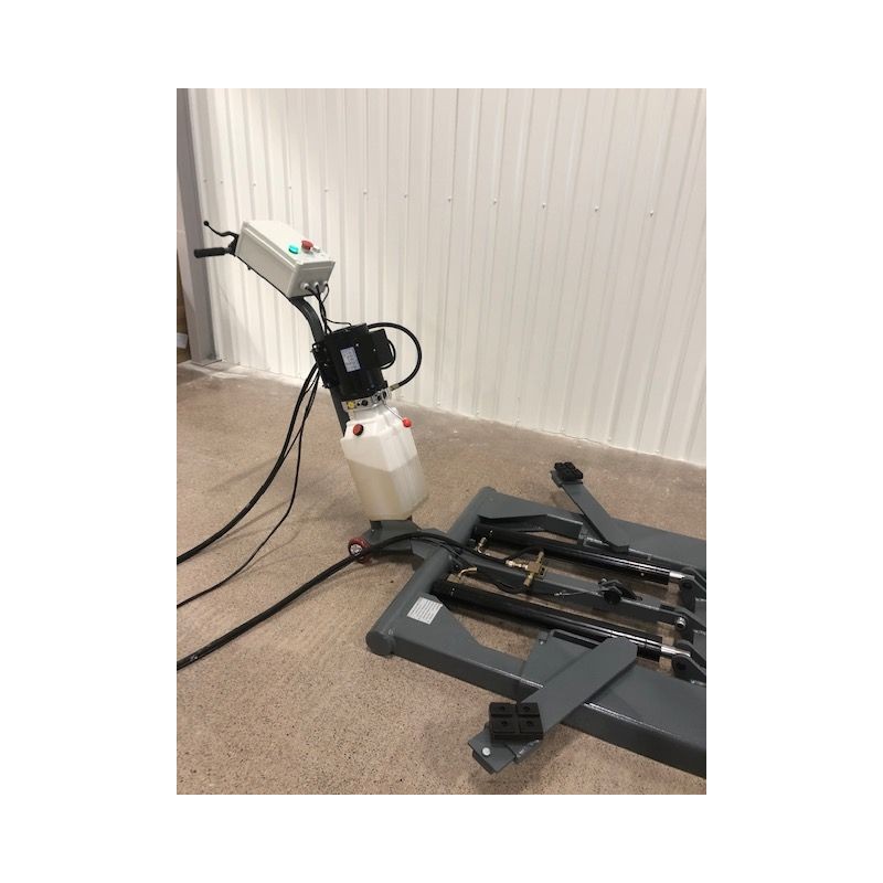 Flyttbar saxlyft med hydraulaggregat och två hydraulcylindrar.