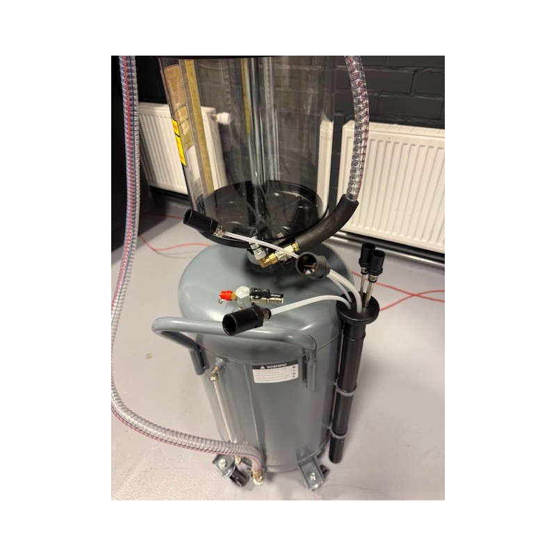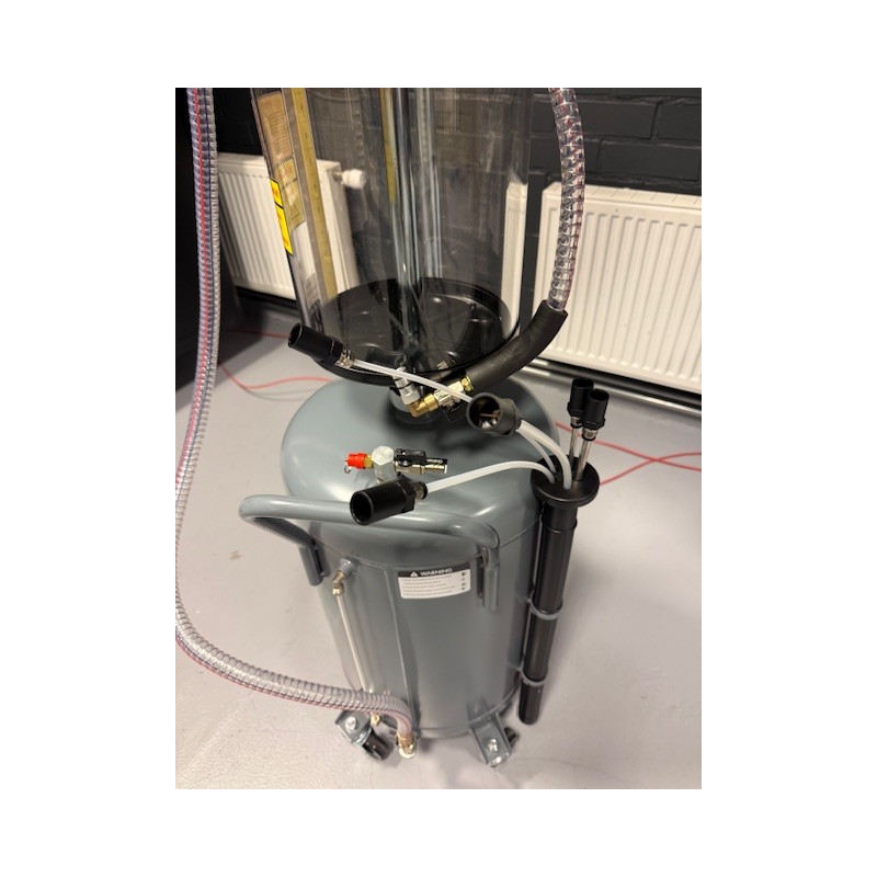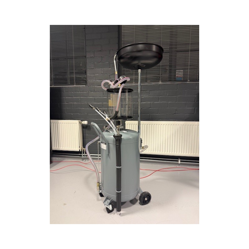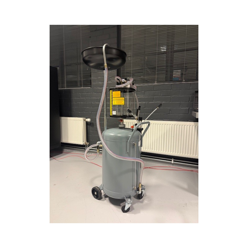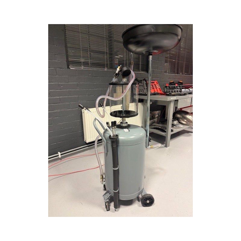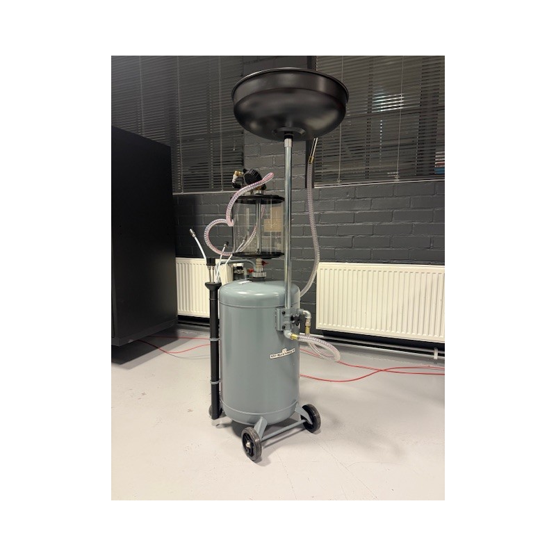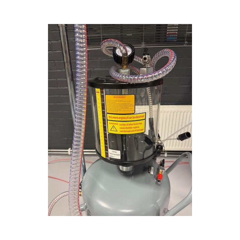 Tryckluftsdriven oljesug 70 liter med graderad behållare som gör det enkelt att se den uppsugna oljan.